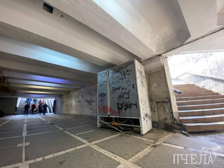 В подземном переходе на площади Революции со стороны улицы Цвиллинга «живого места» не осталось