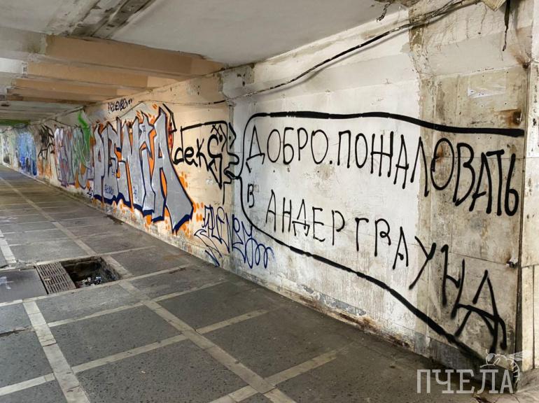 Подземный переход в центре города испортили граффити