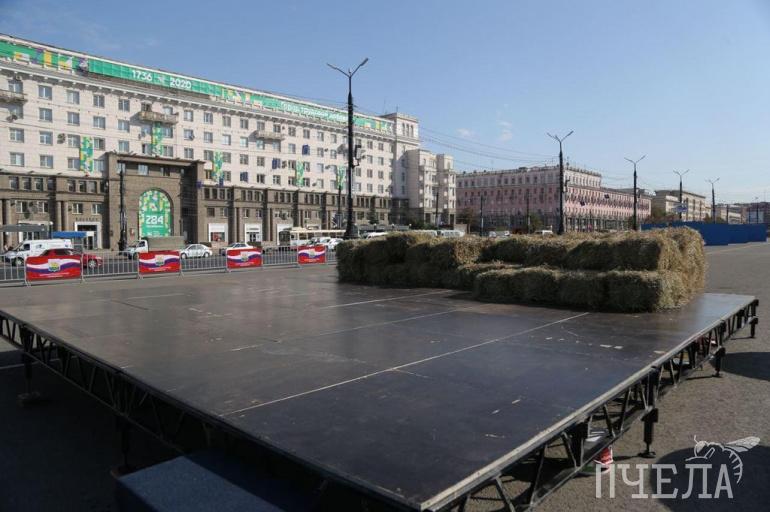 В центре Челябинска вскоре откроют продовольственную ярмарку для продажи фермерского урожая. Для этого на площади Революции уже начали монтировать киоски и туда даже завезли сено.