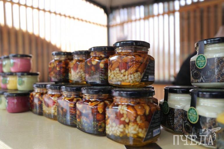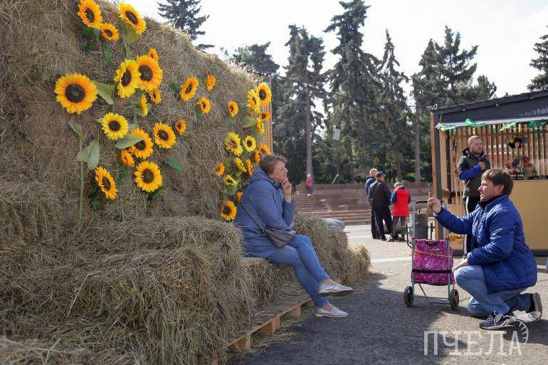 Раз уж это ярмарка, то здесь можно приобрести различные сезонные товары: овощи, фрукты, мёд, цветы