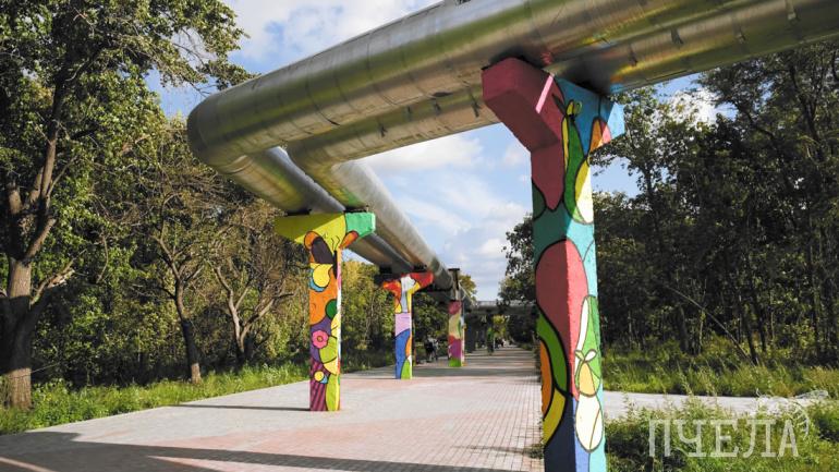 В парке «Плодушка» Ленинского района художники раскрасили опоры теплотрассы
