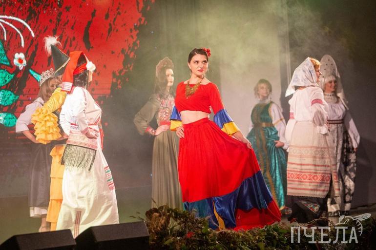 Гостей вечера ждали три конкурсных выхода. Первый — в этнических костюмах, которые конкурсантки шили их своими руками. Второй — семейный, где мамы вышли за руки со своими детьми.