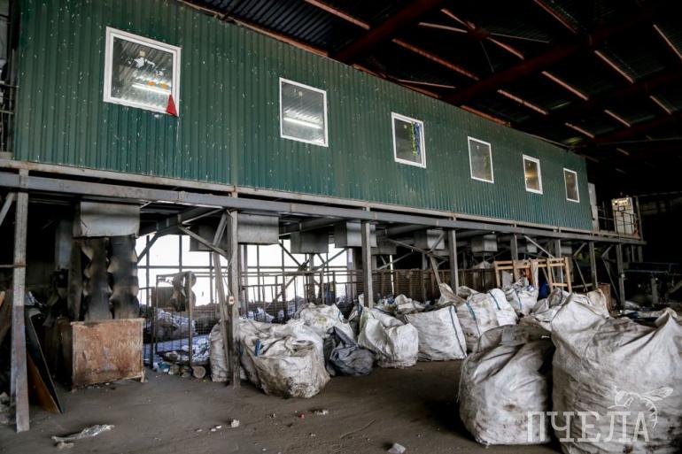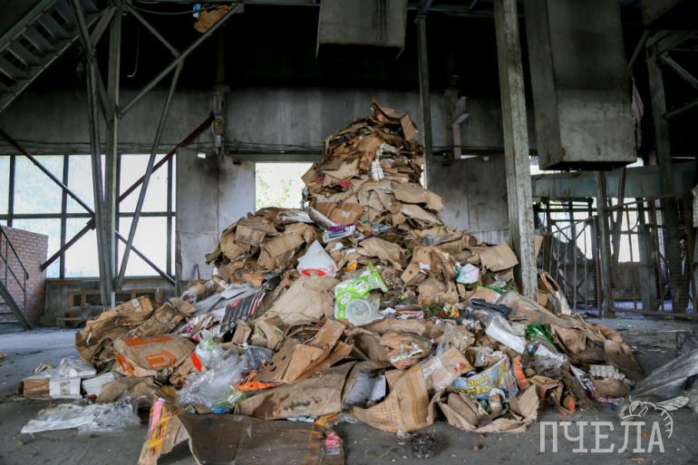 Справа — те самые «хвосты», предназначенные для прессования, вывоза на полигон и утилизации. Кстати, это отверстие — не специальная вентиляция, а просто обрушилась стена — до холодов её планируют починить