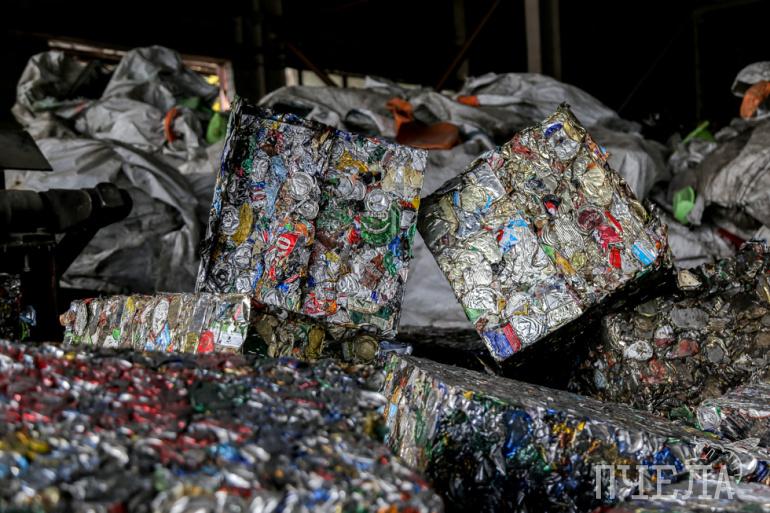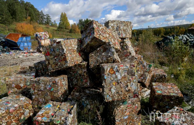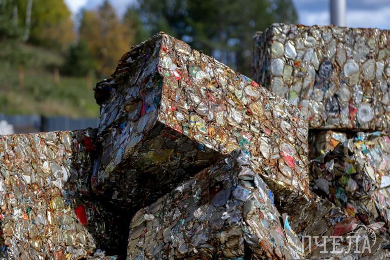 А жесть после прессовки хранится на улице — она не такая ценная, как алюминий. Смутило, что всё лежит на траве, ведь получается, что так во время дождя вся гадость с мусора попадает в землю. Но, как пояснила директор завода, под травой — слой бетонных плит, значит загрязнения не происходит
