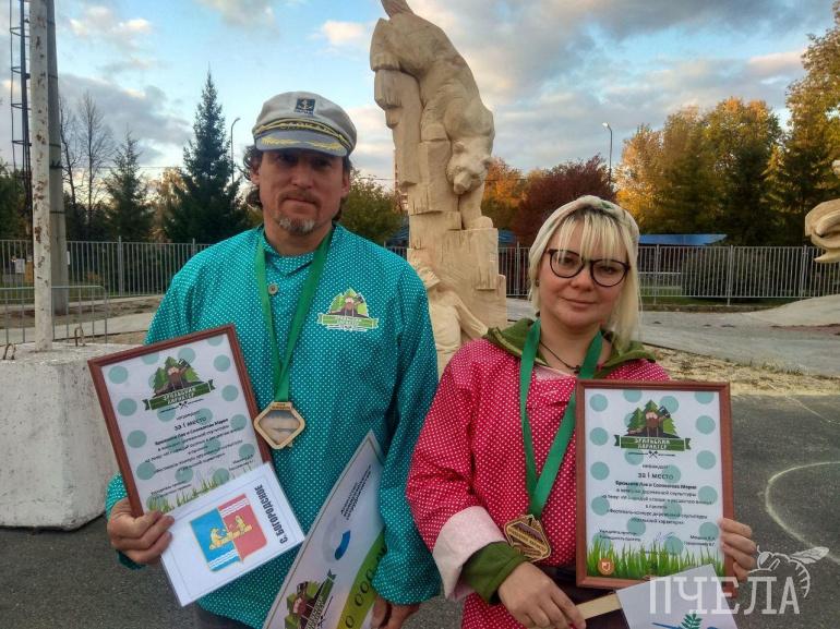 Победители — мастера на все руки. Мария, к примеру, создаёт скульптуры из дерева, железа, льда и сена. А Лев — известный резчик по дереву, который в прошлом году уже поднимался на пьедестал почёта фестиваля «Уральский характер».