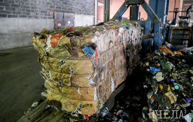 Испачканное в мусоровозах вторсырьё в ожидании отгрузки