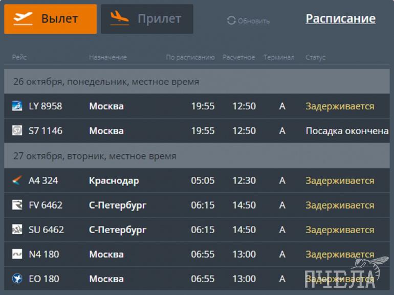 — По предварительной информации, на рейсы зарегистрировано 475 пассажиров, из которых 47 человек размещены в гостинице, остальных заранее известили об изменении времени вылета, — уточнили в транспортной прокуратуре.