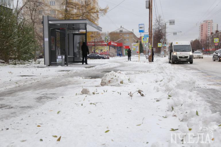 На улицах и во дворах Челябинска во вторник, 27 октября, снежная каша и сугробы перемежаются с участками, покрытыми льдом. В общественный транспорт сложно зайти из-за снежных бугров на остановках. В пресс-службе мэрии сообщили, что уборку снега осложняет сильный ветер. Но при этом в городе к зимнему сезону подрядчики подготовили лишь половину техники.