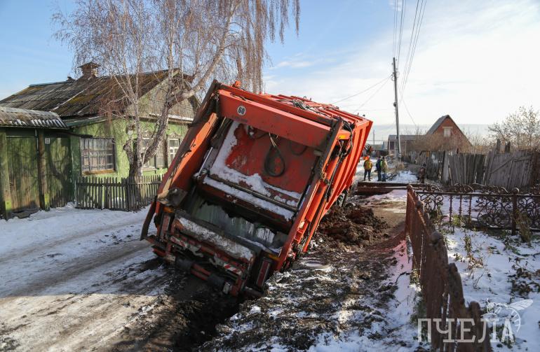 Три мусоровоза в Копейске не смогли забрать отходы, завязнув в грязи