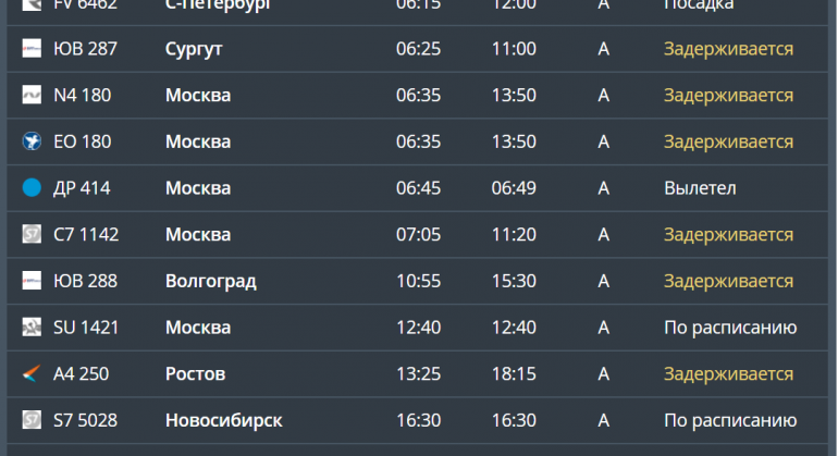 Рейсы, по данным сайта аэропорта, задержали до улучшения погодных условий.