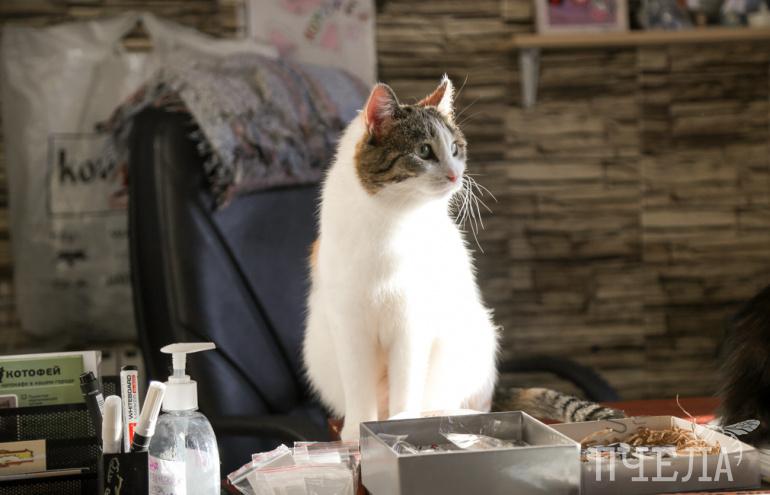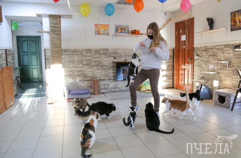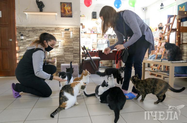 — Наше кафе открыла молодая пара с надеждой создать место, в котором можно в уютной атмосфере погладить очаровательных пушистиков, как-то расслабиться, снять стресс, провести время. И, главное, пристраивать таким образом бездомных котиков в семьи, — рассказала старший администратор котокафе Ирина. — Бывает, что за день чуть ли не 70 человек приходит, и все питомцы радуются вниманию. А потом, в будние дни, когда очень мало гостей или их нет вообще, тогда все котики приходят к администратору, усаживаются на коленки, на живот, ещё пара по бокам, утыкаются в нас и выпрашивают ласку. В такие дни сразу видно, насколько им не хватает внимания и общения с людьми.