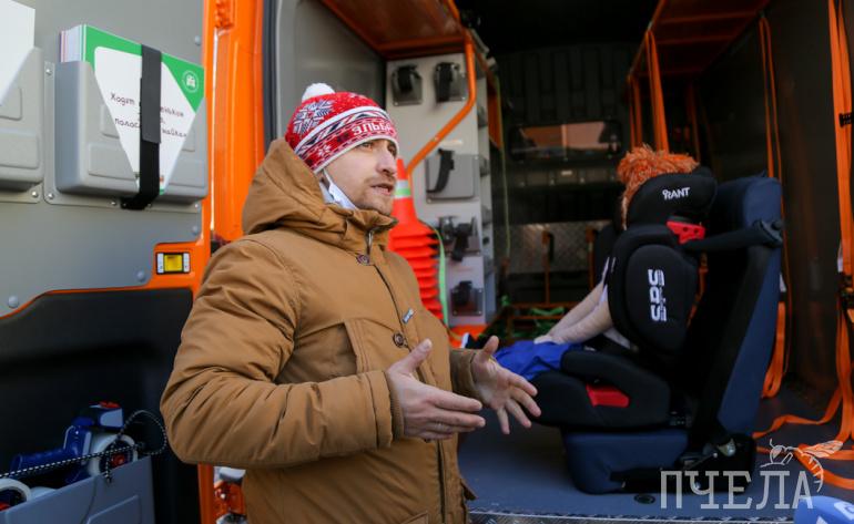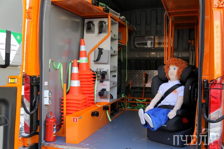 Специальное демонстрационное кресло со штатным ремнём и детское удерживающее устройство наглядно показывают, как летают по салону незакреплённые макеты. Инструктор показал ребятам, как правильно пристёгиваться и отметил, что это нужно делать обязательно водителю, а также пассажирам — не только спереди, но и сзади.