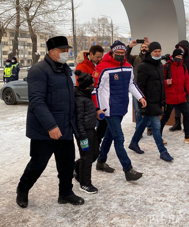 Покататься на коньках в парк Терешковой сегодня, 5 декабря, приехал губернатор Алексей Текслер с сыном. Также на открытии присутствовал актер Станислав Ярушин.