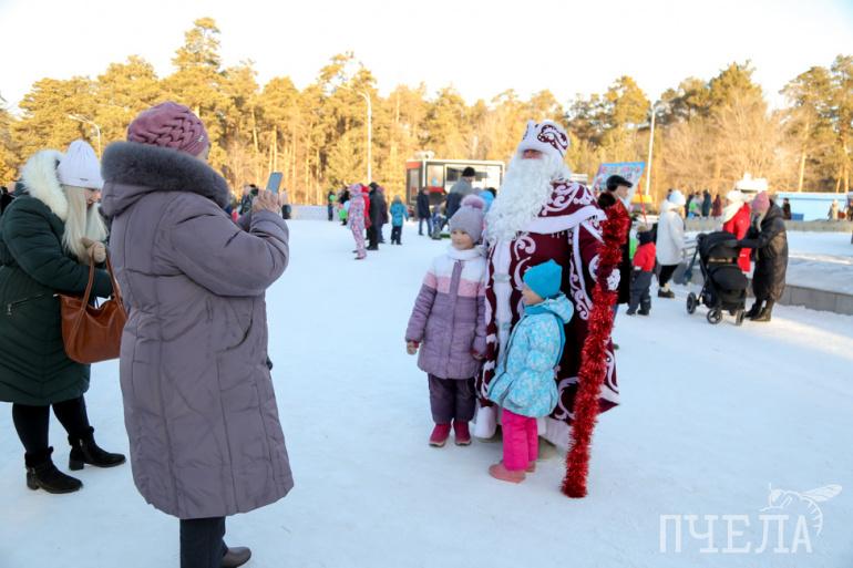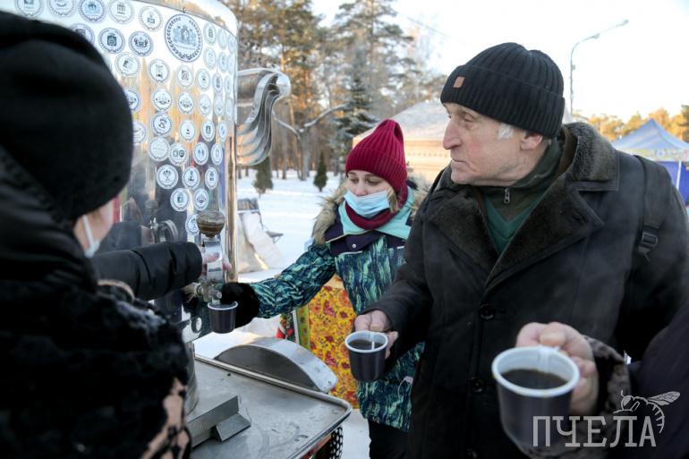 Согреться в это праздничное зимнее утро челябинцам помог чай из гигантского самовара.