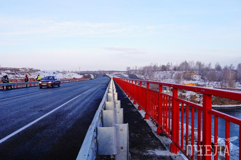 С появлением нового монолитного моста дорога ожила, а автомобилисты радостно сигналят рабочим, которые открыли движение, и наблюдают с непривычки за новым удобным переездом через реку. Скоро движение здесь станет оживлённее, ведь не все ещё знают, что можно забыть про поездки в объезд и начать пользоваться новым маршрутом, которого здесь ждали долгие годы.