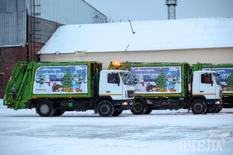 На улицы Челябинска вышли новогодние мусоровозы