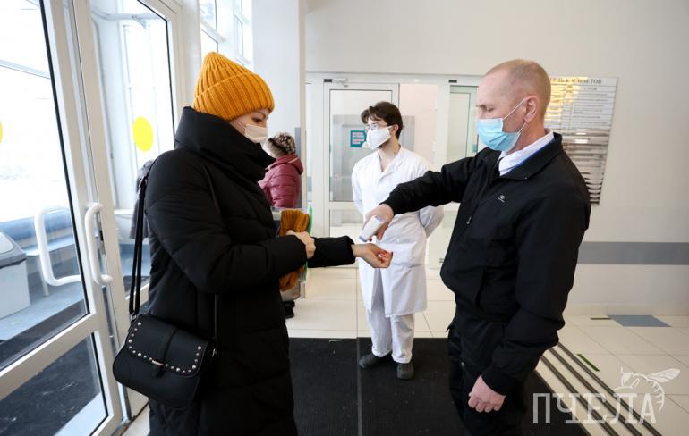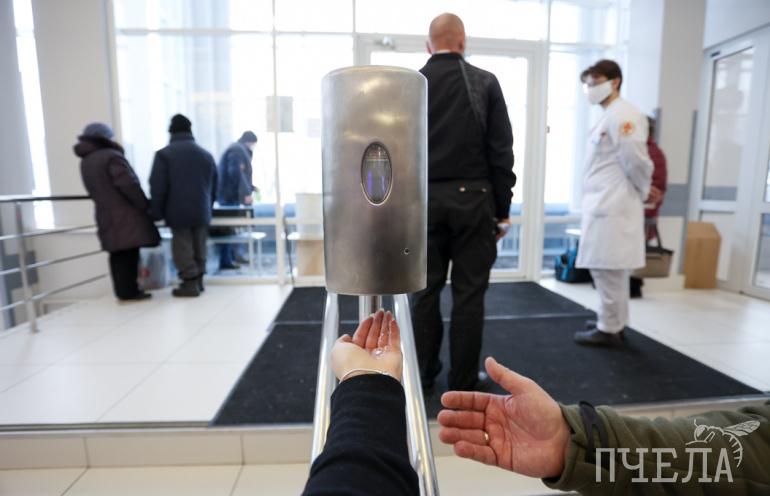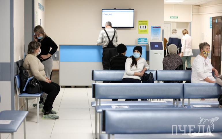 Чтобы избежать концентрации людей, приём здесь ведётся строго по указанному в талонах времени. Места ожидания ограничены разметкой в полтора метра, на скамейках в холлах — надписи, регламентирующие посадку.