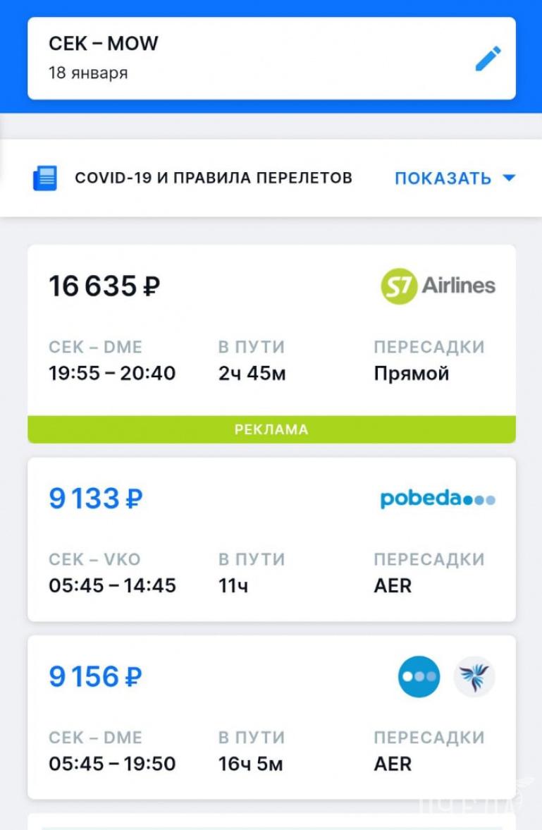 Ранее улететь в Москву можно было за значительно более скромную сумму – авиакомпания «Победа» осуществляла регулярные рейсы стоимостью около трёх тысяч рублей. В социальных сетях челябинцы опубликовали и более шокирующую информацию: стоимость билетов на рейсы авиакомпании «Россия» 14 января достигали 57 тысяч рублей. Бизнес-класс этой же авиакомпании в субботу, 16 января, может обойтись в 149 тысяч рублей.