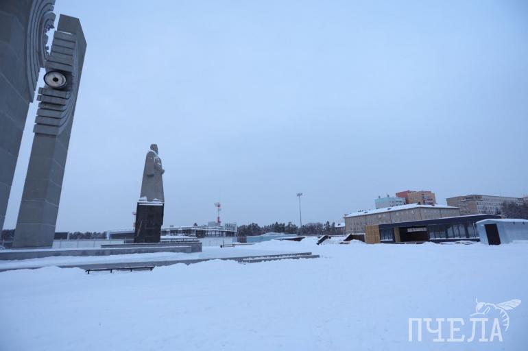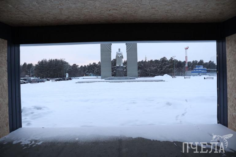В том, что скандальный павильон, который в декабре начали строить в качестве раздевалки для будущего катка возле памятника Курчатову, всё ещё на месте, сегодня убедился фотограф «Пчелы».