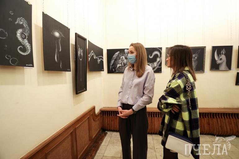 — Это вторая моя выставка, пока я вижу себя начинающим художником, — рассказала Полина Гаврилова. — Говорят, мои картины злые, мрачные, но, считаю, в этом есть своя эстетика и красота. Первым нарисованным животным был кролик, а затем пришла идея показывать весь диапазон эмоций путем животных. Акцент делала на глаза.