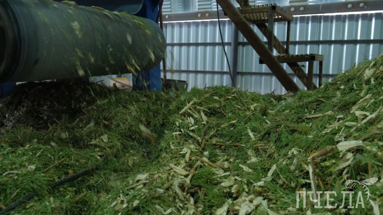 Затем несколько раз перемалывается и соединяется с другими измельчёнными древесными отходами. Пресс формирует евродрова