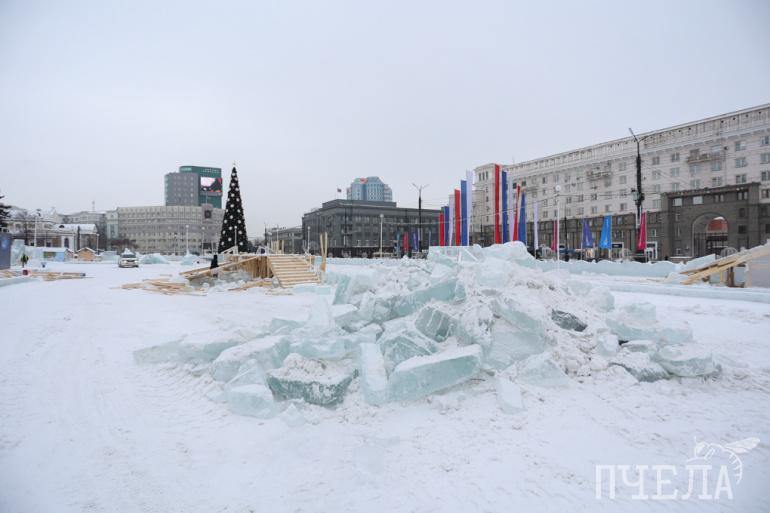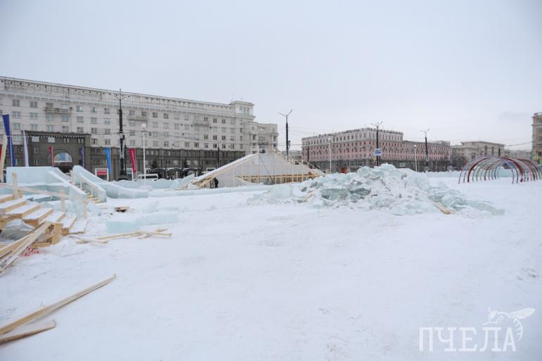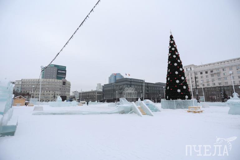Из-за потепления в Челябинске снесли почти весь ледовый городок на площади Революции