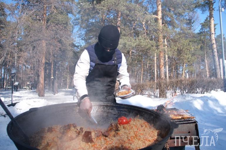 Парк Гагарина превратился в настоящий фудкорт — здесь челябинцы отведали плов, шашлык, блины, манты. На развернувшейся ярмарке можно было приобрести соленья и варенье.