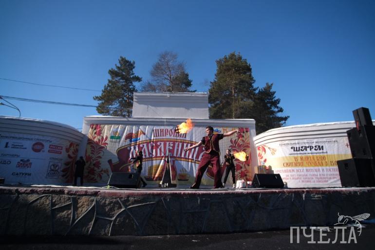 Весёлые гулянья, эстаферты, огненное шоу и, конечно, море блинов ждали челябинцев к 12:00. К этому времени плотный поток автомобилей уже сковал проспект Ленина. Центральная аллея парка, несмотря на довольно-таки холодный день, уже была заполнена горожанами.