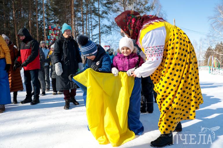 Были там и традиционные русские забавы: масленичный хоровод у костра, песни, пляски и частушки, блины, ярмарка и многое другое. Главным символом праздника стал Большой Масленичный мешок, который собирал все проблемы, печали и огорчения.