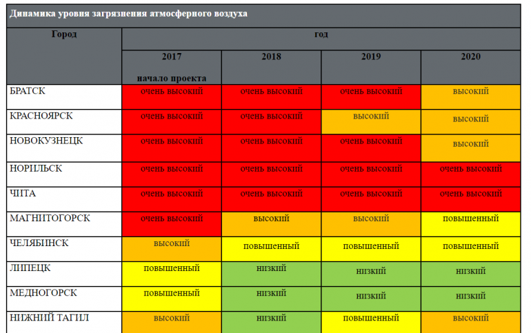 В Челябинске, Красноярске, Норильске и Чите качество воздуха по сравнению с предыдущим годом не изменилось.