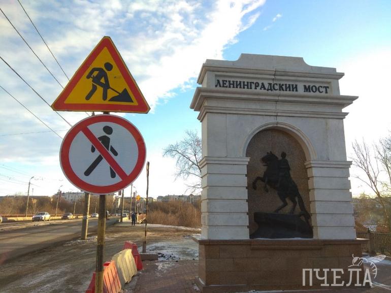 Этот мост запустили в 1953 году. «Ленинградским» он стал 8 мая 1999 года. Спустя три года на нём захоронили капсулу с землёй города-героя Ленинграда. Монумент с барельефом Медного всадника при въезде на мост со стороны улицы Кирова установлен в честь 20 300 ленинградцев, которых в 1941–1942 годах эвакуировали из родного города для работы на челябинских оборонных заводах.