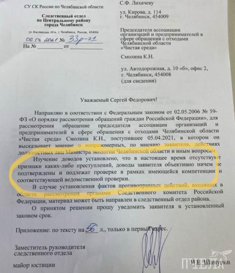 — В настоящее время отсутствуют признаки каких-либо преступлений, доводы заявителя объективно ничем не подтверждены — процитировал Безруков документ следственного отдела по Центральному району Челябинска.