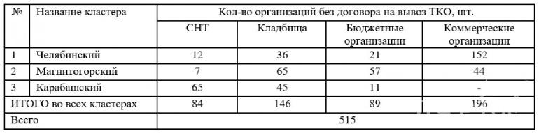 Региональный оператор «Центр коммунального сервиса» выявил в Челябинском, Карабашском и Магнитогорском кластерах более 500 юридических лиц, которые до сих пор не заключили договоры на вывоз твёрдых коммунальных отходов. Отсутствие такого договора является нарушением федерального законодательства, отметили в компании и предупредили, что с нарушителями будет разбираться прокуратура.