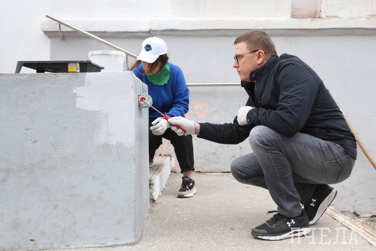 Алексей Текслер принял участие в субботнике в родной школе № 92 в Металлургическом районе Челябинска. Он убрал прошлогоднюю листву и траву, покрасил школьное крыльцо и разнёс землю по клумбам.