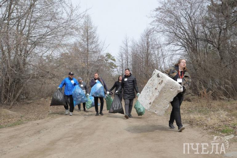 Участники разбились на 39 команд и несколько часов убирали мусор, а ещё — играли в экологическую викторину, результаты которой тоже приносили баллы, нужные для победы.