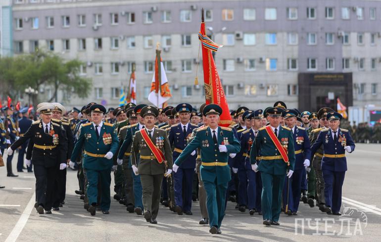 Сначала — репетиция торжественного построения. В этом году в нем участвуют 1732 человека. Среди них — военнослужащие, гражданский персонал, Росгвардия и даже дети.