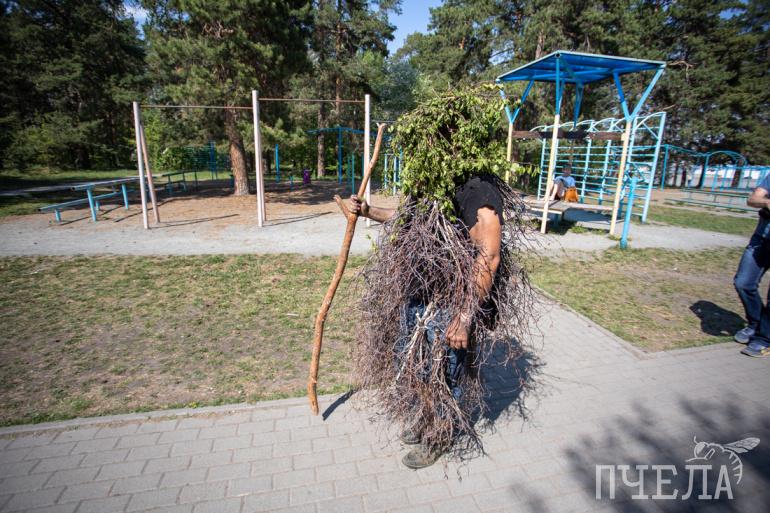 Участников подбадривал Леший из валежника