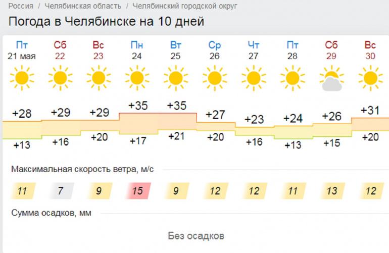 Судя по долгосрочному прогнозу Гисметео, в Челябинске дождей в ближайшие дни можно не ждать.