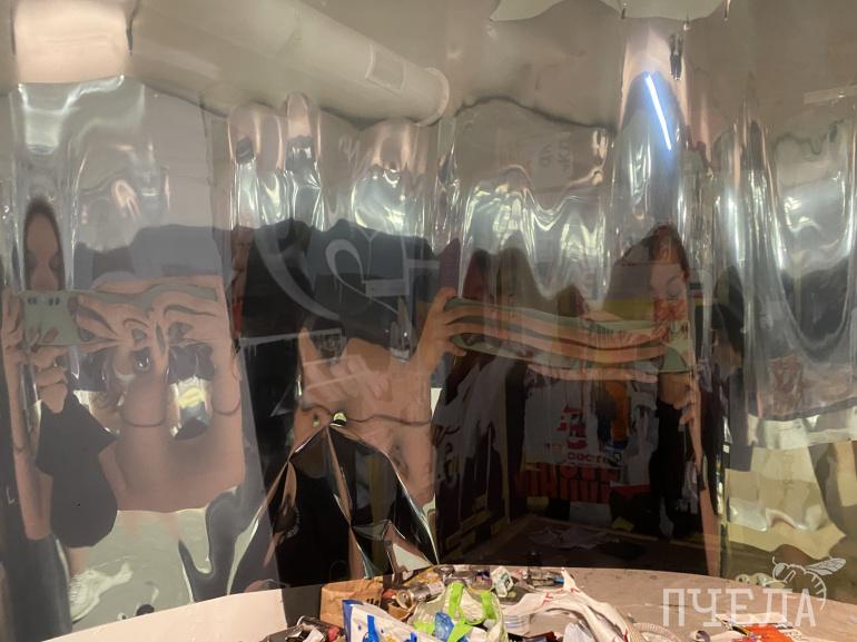 — И, собственно, весь концепт в том, как материал работает со зрителем, — рассказала Светлана. — Каждый может стать частью этой инсталляции, поместить себя внутрь, и тогда у неё появится живая часть, поскольку человек переживает свои ощущения и эмоции. Мне показалось это классным эффектом отсутствия, ощущения одиночества в толпе.