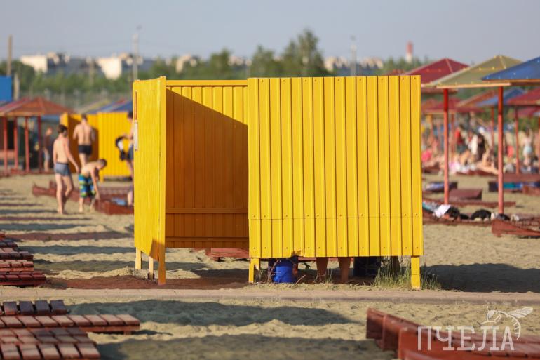 Это тот самый пляж, который 24 мая открыла мэр Наталья Котова. Он абсолютно новый, на его обустройство ушло порядка трёх миллионов рублей, вход — свободный.