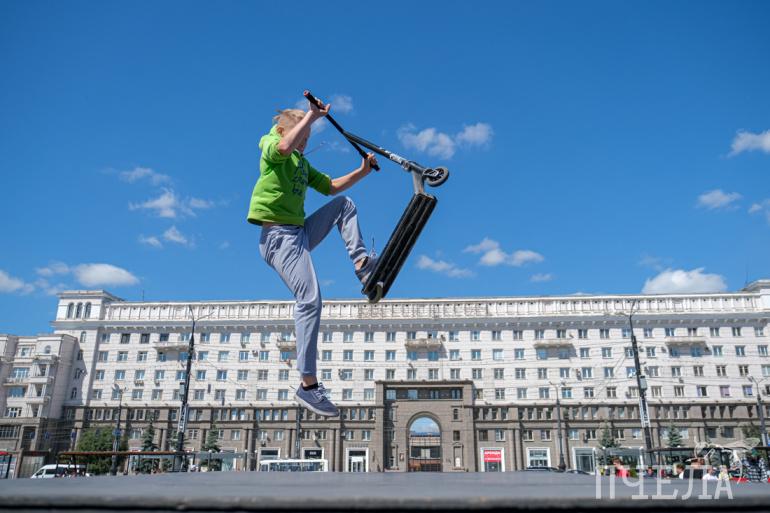 На площади Революции в Челябинске прошли соревнования по экстремальным видам спорта Summer Time. Среди дисциплин — BMX, скейтборд и трюковый самокат. Накануне в мэрии приглашали принять участие горожан старше 10 лет, несовершеннолетним нужно было принести согласие родителей.