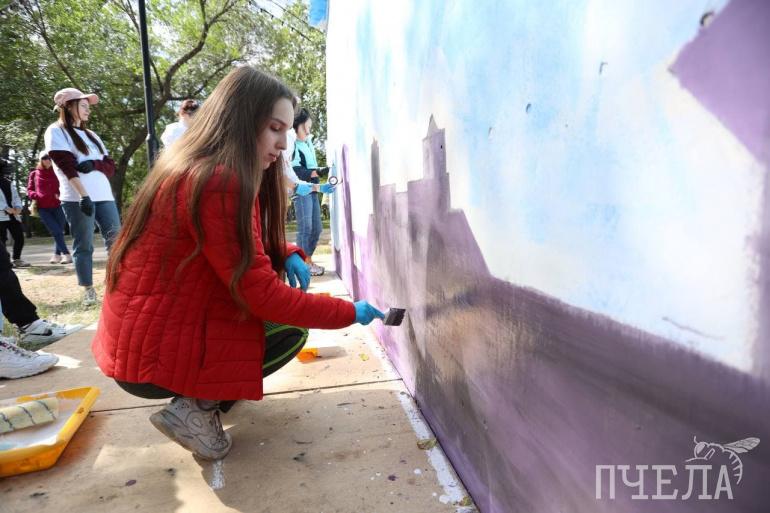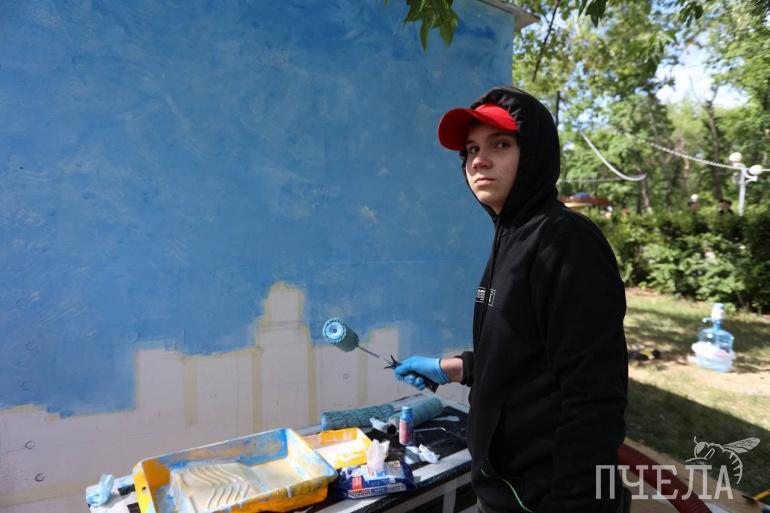 — Нам дали задание нарисовать храм на Алом поле, — поделилась заведующая отделением изобразительного искусства Детской школы искусств № 3 Челябинска Ольга Пастух. — Архитектура сложная, поэтому нужно постараться, чтобы изображение было похоже на оригинал. Пространство, на котором мы пишем, должно в итоге приобрести панораму города. Наша сторона — Храм Александра Невского на Алом поле. В середине — пролетающий над ДПШИ метеорит. С противоположной нам стороны — ЮУрГУ. Ребята, которые сейчас здесь трудятся, сами вызвались попробовать себя в такой работе. Для детей это, в первую очередь, новый опыт. А когда у них ещё будет возможность расписать стену? Ведь здесь не только кисточками работать нужно, но и валиком, и скотчем. Даже не у каждого художника есть такой опыт.