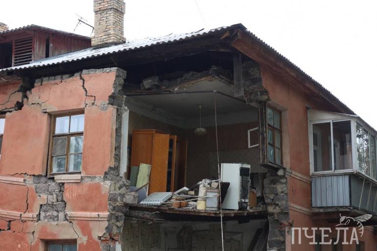 Позже жители рассказали нашему сайту, что стена дома обрушилась после старта капремонта. Рабочие начали делать отмостку для укрепления фундамента, а ветхое здание не выдержало, наклонилось, а через две недели распрощалось с частью стены.