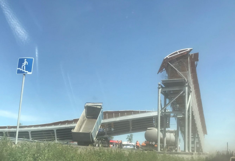 Напомним, причиной ЧП стало ДТП с участием грузового автомобиля. Кузов транспортного средства поднялся при проезде под модульным пешеходным переходом, в результате чего сооружение обрушилось на проезжую часть. Пострадавших нет. Последствия аварии ликвидировали дорожные службы, на месте работали два крана. Сотрудники ГИБДД обеспечивали пропуск автомобилей по обочине.