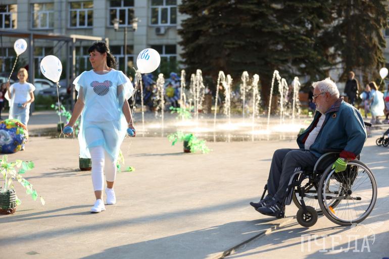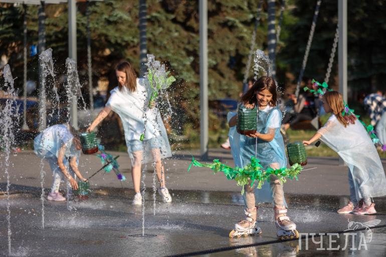 У фонтана Южно-Уральского госуниверситета в Челябинске прошёл перформанс «При-роде». К участию в нём привлекли детей, победивших рак.
