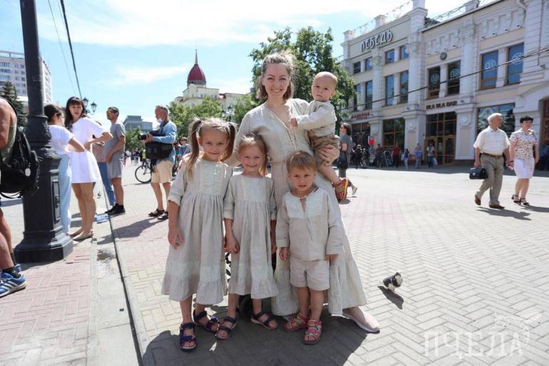 — Мы не выступаем, это наша повседневная одежда на любые мероприятия, — рассказала Наталья. — Её шьёт челябинский дизайнер Мария Белисова. Наряды славянского типа не только необычно смотрятся в наше время, они в принципе очень удобны, поскольку изготовлены из льна. Когда прохладно на улице, то в такой одежде тепло, а когда жарко — лён холодит. Сегодня мы всей большой семьёй пришли концерт послушать, ведь сегодня семейный день.
