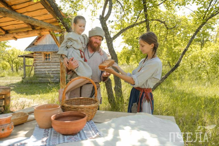 Мальчишки идут в гончарную, токарную мастерские и кузницу, а девчата занимаются ткачеством и печением хлеба.
