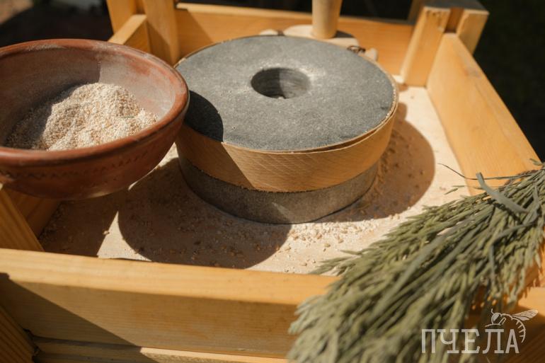 — Магазинов нет, муку купить негде, значит надо делать самим, — поясняет Анна Закирова. — Мы показываем наш чудесный жернов и схему его работы. У каждой девочки есть возможность его покрутить. Потом говорим о том, насколько это было тяжело, сколько мы муки получили, сколько ещё её понадобится, чтобы испечь хлеб. А потом каждая девочка из кусочка теста и муки готовит в уличной летней печи свой хлеб.