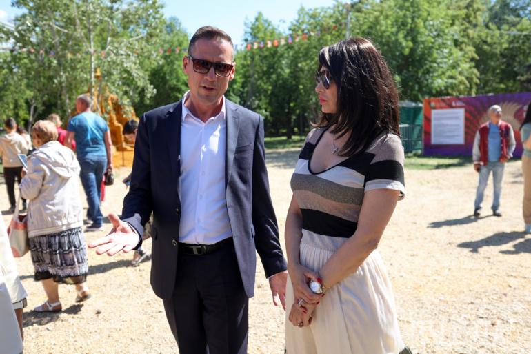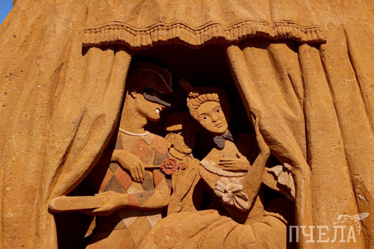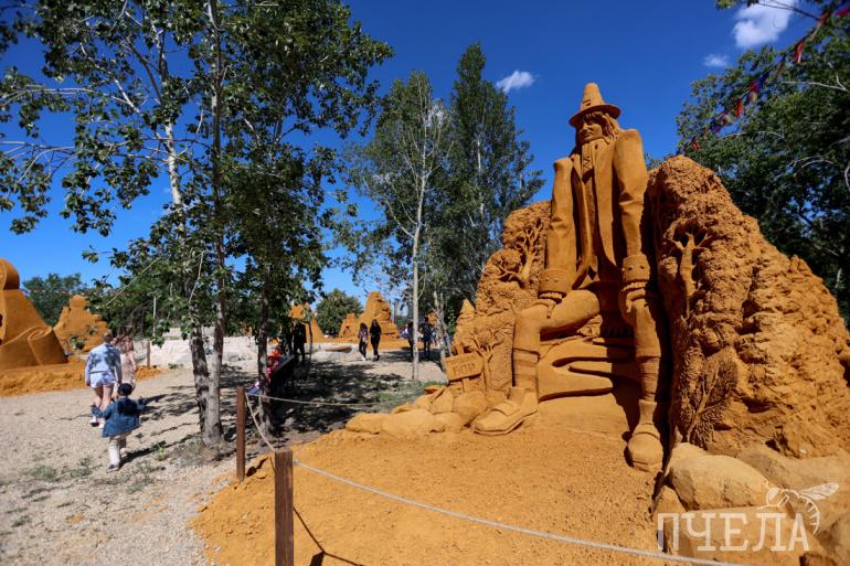 — Мы разрабатывали концепцию полгода, и потом в торгах выиграли со своей идеей. В них участвовало пять фирм, но победили мы. Темы подбирали краеведческий музей, департамент культуры и мы. Мы здесь с конца мая, с 21 числа. Сначала подготавливали опалубку, заготавливали формы, привозили песок, — рассказал «Пчеле» арт-директор фестиваля Иван Савенков.