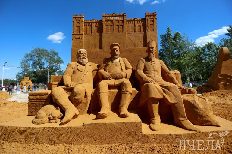 — Уральский песок — очень суровый, твёрдый. Но зато у него такой цвет красивый — терракотовый, оранжевый, на солнце он очень красиво смотрится. С таким песком я ещё не работал, хотя практика интересная. Похожий песок был в Бельгии и Австралии, но всё-таки здесь он более суровый, твёрдый, когда высыхает, — поделился с корреспондентом «Пчелы» скульптор Баграт Степанян.